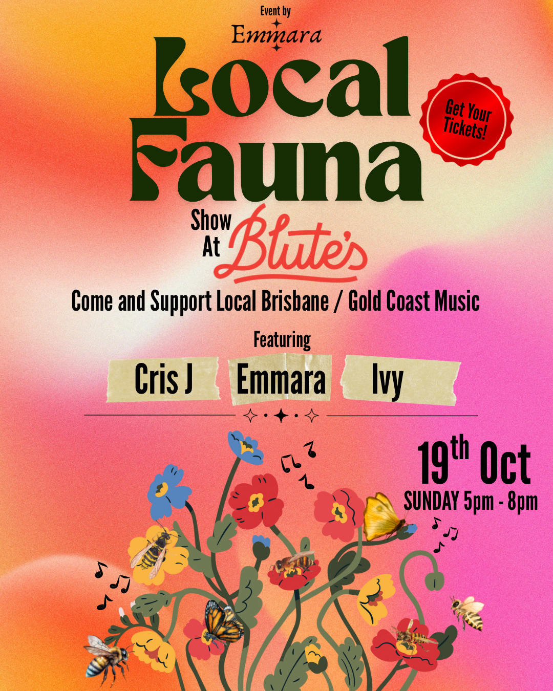 Join us at Blute’s Bar in the heart of Fortitude Valley on Sunday, October 19th from 5PM for an evening dedicated to the raw talent and vibrant sounds of local Brisbane and Gold Coast artists at the Local Fauna Show by Emmara.